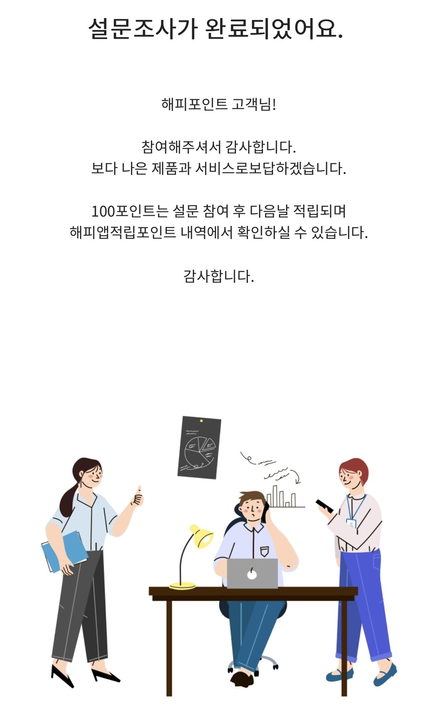 언제까지 진행되는 이벤트인지는 모르겠으나 어플로 설문조사에 참여하면 100p를 적립해 주더라고요. 질문도 5가지 정도에서 선택하는 거라 어렵지 않고 괜찮은 거 같아요.