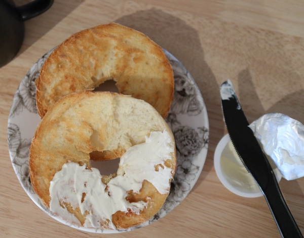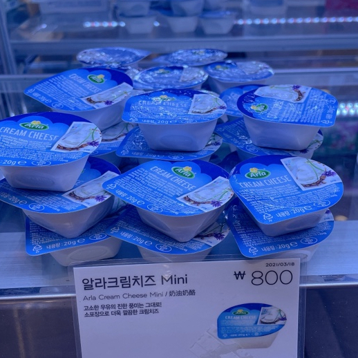 베이글(1,800원) + 크림치즈(800원) 따로 사는 것보다 베이글에 월넛 크림치즈 발라진 것 (2,400원)을 사는 게 더 저렴하지만 따로 사서 빵 에어프라이에 데우고 차가운 크림치즈 올려먹는 게 맛있어서 이렇게 구매했어요