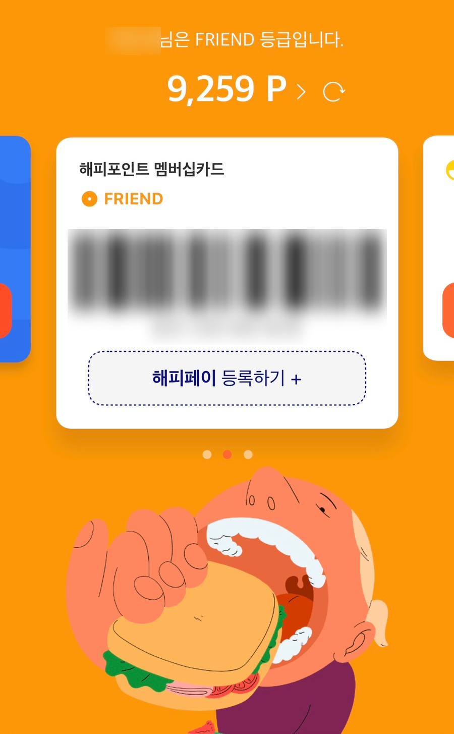 예전에는 실물 카드를 이용했지만 요즘에는 지갑을 워낙 작은 걸 가지고 다니고 간편하게 이용할 수 있는 모바일 카드를 선호하는 편이에요. 저는 해피포인트 앱을 다운로드해 로그인해두고 사용하고 있어요. 해당 바코드를 이용처에 제시하면 되니 사용이 정말 간단하죠? 😊