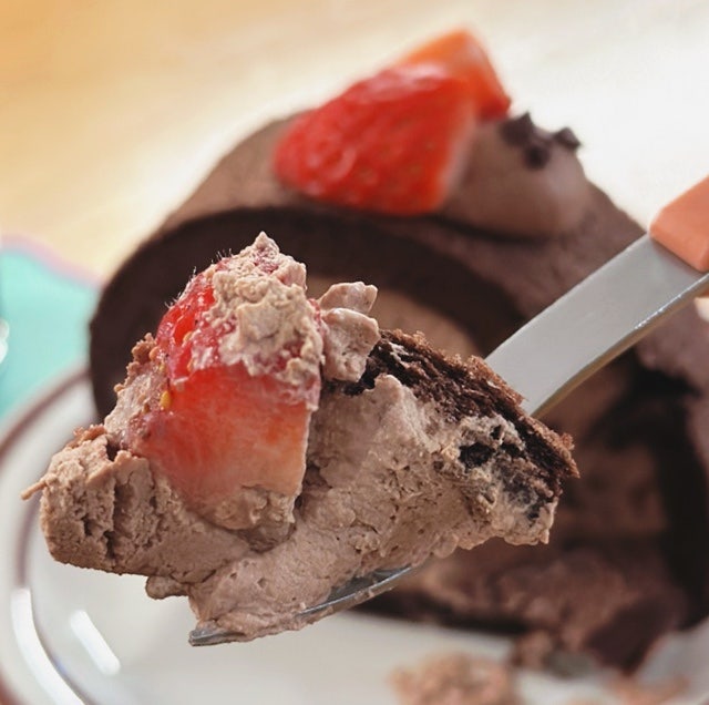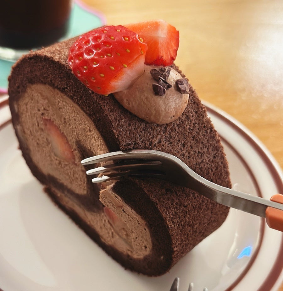 이 초코롤은 정말 독특한 식감을 가지고 있어요. 푹신한데 단단한 빵, 부드러운 초콜릿 크림, 상큼한 딸기까지 완벽한 조합! 크림이 진한 초콜릿 풍미를 가지고 있으면서도 느끼하지 않아서 한 조각을 먹고 나면 또 먹고 싶어지는 맛이에요.