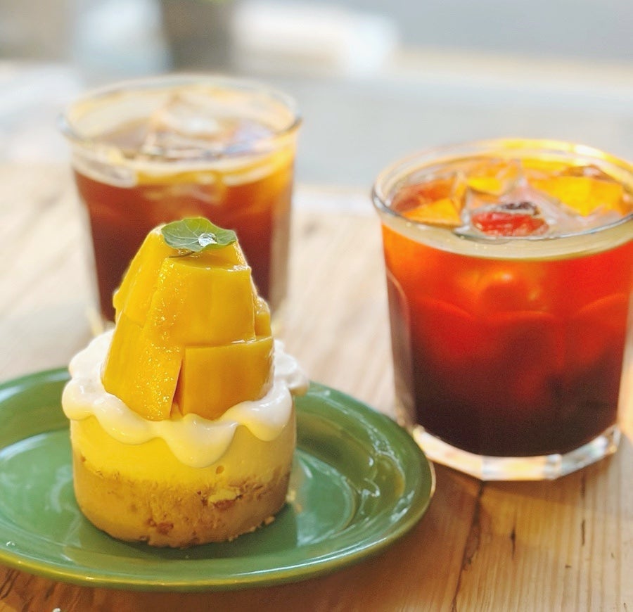 제가 주문한 건 망고 케이크와 아메리카노.