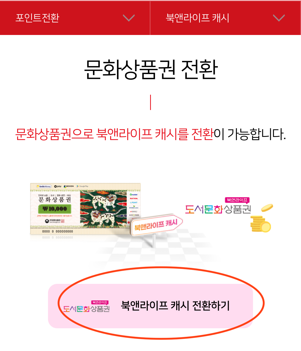 클릭하면 북앤라이프 캐시 전환 페이지로 이동됩니다.